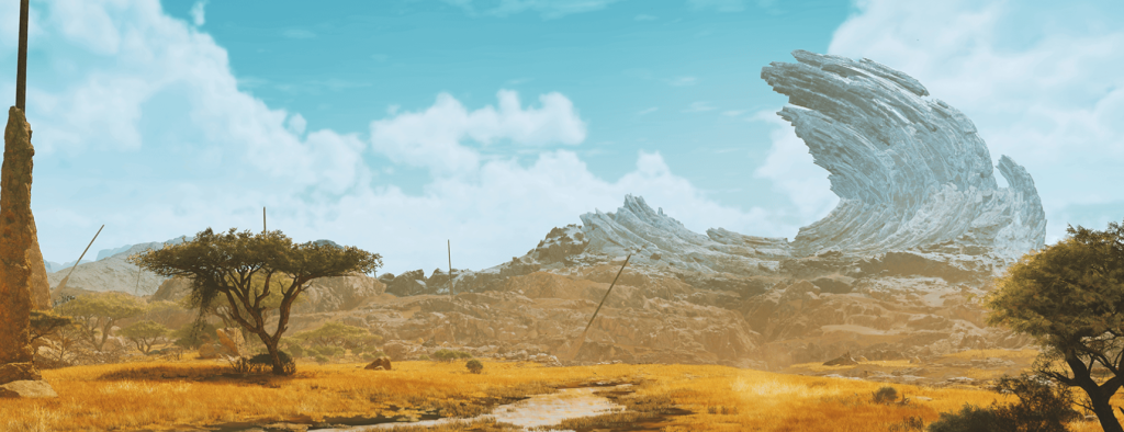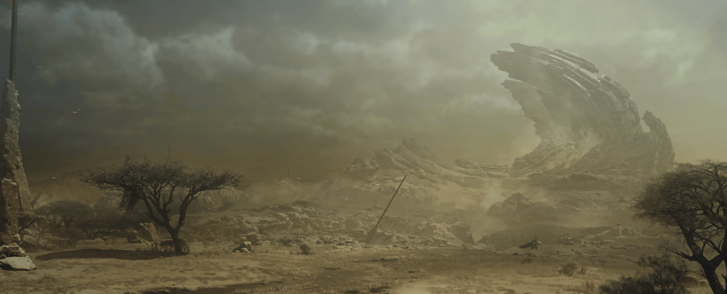 ダイナミックにその姿を変貌させる広大なフィールドは、 飢えた肉食モンスターが群れて争う過酷な「荒廃期」と、「異常気象」を経て迎える、豊かな生命が溢れる「豊穣期」という 二面性を持っており、ひとところにいたとしても、 時によって全く異なる表情を見せる。