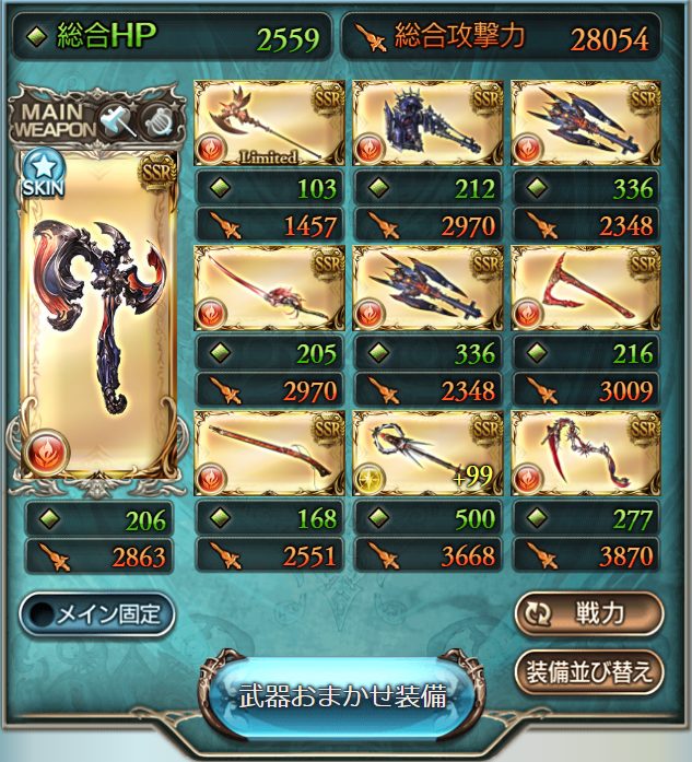 武器と召喚石の編成