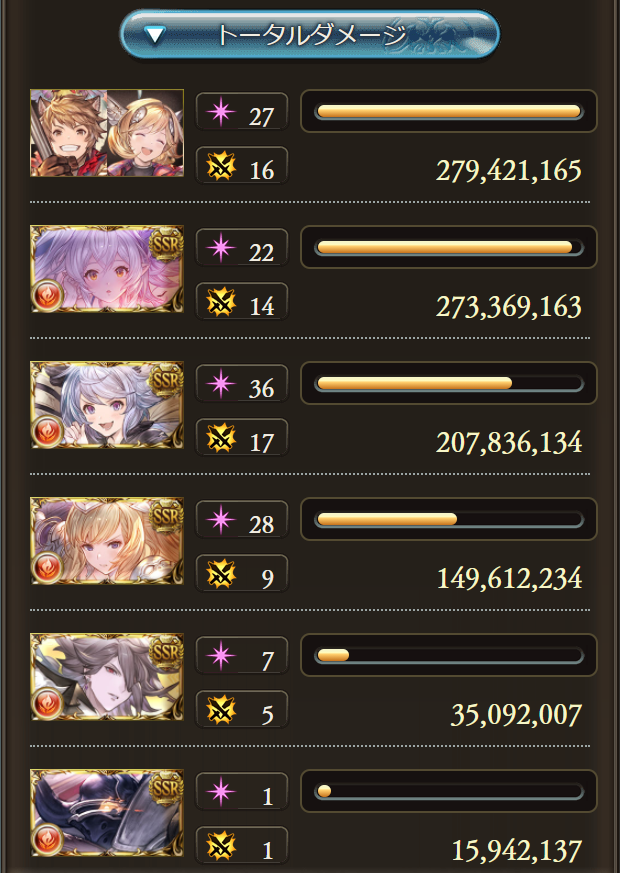 ダメージの内訳はこんな感じでした。