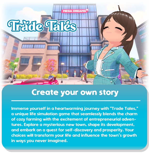 A modern-life farming simulation fused with entrepreneurial adventures. Cultivate your land, manage a factory, open your own shop, establish your brand, , and delve into the secrets of the trade. Build your legacy in Trade Tales — a game where you can live out your dream life.