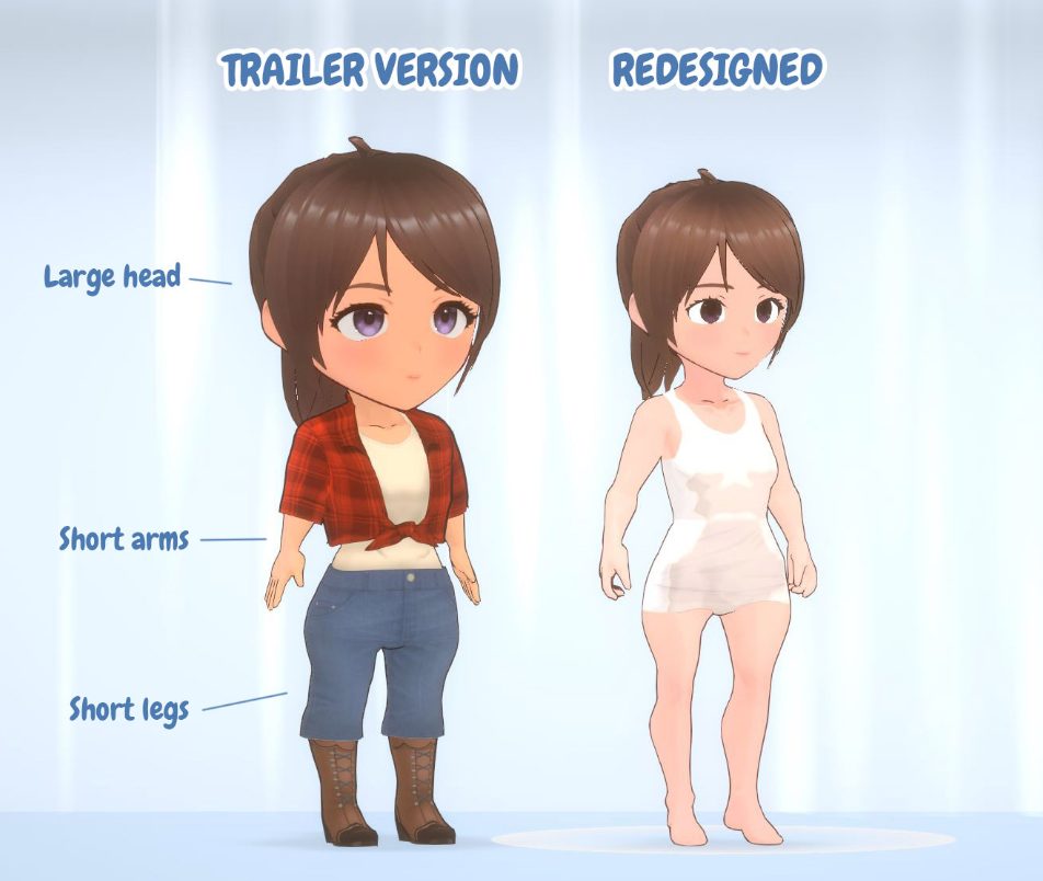 今まではデフォルメされた3等身ほどのキャラクターでしたが、アップデートにより顔が小さくなり手足も長くなりました。全体的に等身が上がり、より現実の人間に近い感じになっているようですね。