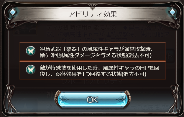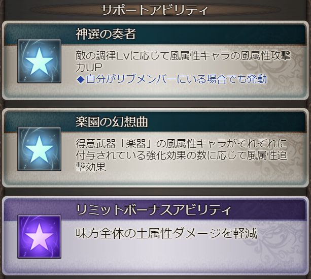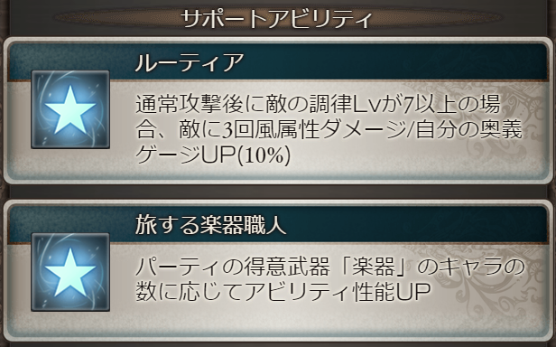 パーティの得意武器「楽器」のキャラの数に応じてアビリティ性能UP