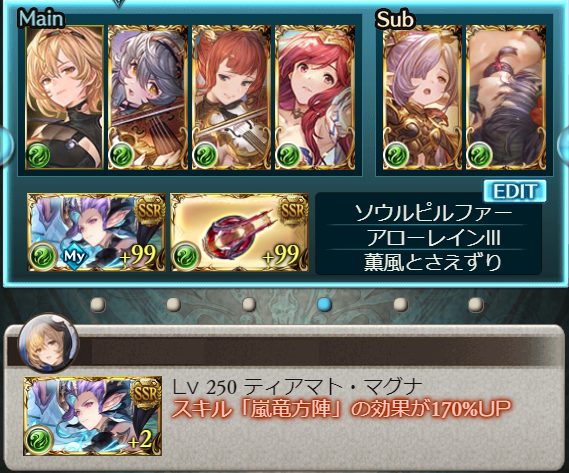 今回も引き続きセレフィラを編成しています。前回紹介した編成が組める方であれば、ここまでは引き続き編成できますね。