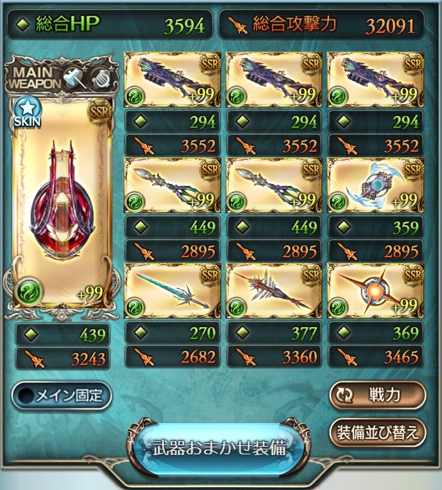 攻略が安定しないようであればグリム琴やアウラ短剣をグリム杖に置換えてHPを確保したほうが良いかもしれません。